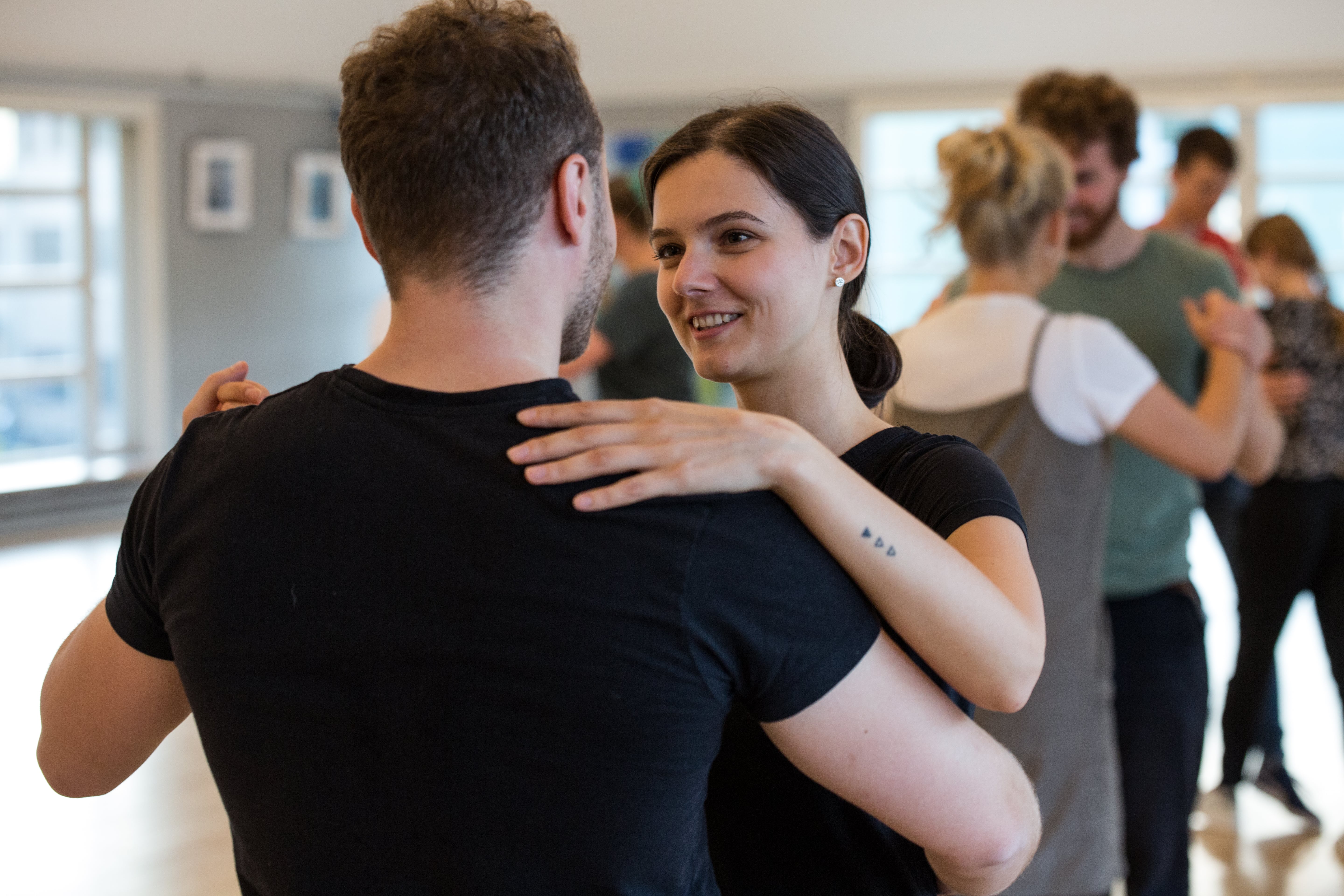 The class continues where the beginner level left off, with waltz, quickstep, tango, cha-cha-cha, rumba, and jive — plus we will begin working on samba and Viennese waltz.